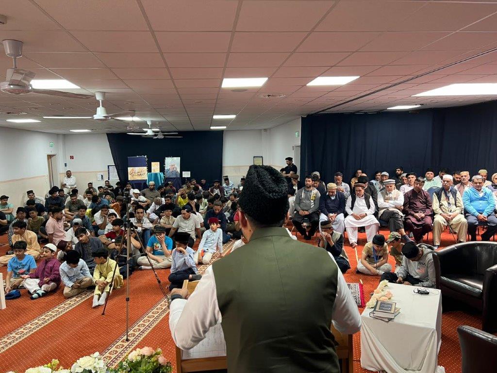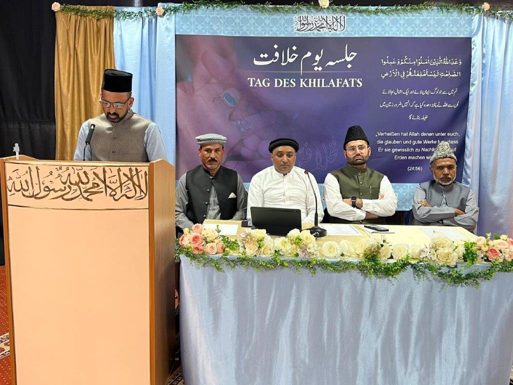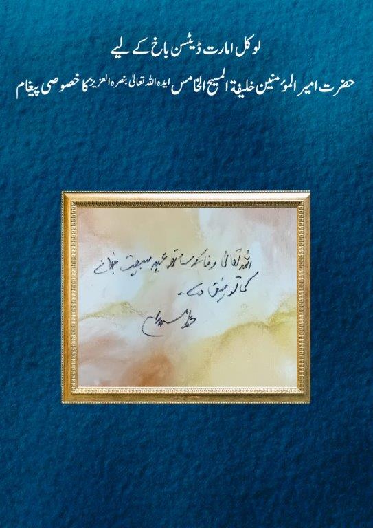 https://youtu.be/SfoSR5jABfg اللہ تعالیٰ کے فضل سے جرمنی کی لوکل امارت ڈیٹسن باخ کو مورخہ ۲۶؍مئی ۲۰۲۴ء کو مسجد بیت الباقی میں جلسہ یوم خلافت منانے کی توفیق ملی۔الحمدللہ علیٰ ذالک جلسے کا آغاز تلاوت قرآن کریم و ترجمہ اور نظم سے ہوا۔ بعد ازاں ‘‘خلافت کی افراد جماعت سے محبت’’ کے موضوع پر اردو ڈاکومینٹری دکھائی گئی۔ اس کے بعد اطفال اور ناصرات کے لیےBuzzerکوئز پروگرام منعقد کیا گیا جس کے لیے عزیزم معیز ناصر نے اطفال کی چار ٹیمیں تیار کیں جن میں ہر عمر کے اطفال شامل تھے۔ ان کے مابین کوئز یوم خلافت کے موضوع پر نوید احمد صاحب اور ان کی ٹیم نے کروایا۔ جیتنے والی پہلی دو ٹیموں کو جلسہ کے آخر پر انعامات سے نوازا گیا۔ اسی طرح خدام کے لیے جرمن زبان میں ایک Panel-Discussionرکھی گئی جس میں مبرور باجوہ صاحب،عزیزم ناصر عبداللہ صاحب اور فرحان احمد صاحب نے مل کر ’’خلافت احمدیہ سے اخلاص و وفا‘‘ کے متعلق بات کی۔ خاکسار (مربی سلسلہ) کی اردو تقریر کے بعد لوکل امیر صاحب نے اختتامی کلمات کہے۔ بعدہٗ کوئز میں پوزیشن حاصل کرنے والی ٹیموں میں انعامات تقسیم کیے گئے اور دعا کے ساتھ جلسہ اپنے اختتام کو پہنچا۔ اس جلسہ کی خاص بات یہ تھی کہ حضور انورایدہ اللہ تعالیٰ بنصرہ العزیز کا خصوصی پیغام ‘‘اللہ تعالیٰ وفا کے ساتھ عہد بیعت نبھانے کی توفیق دے’’ جو لوکل امارت ڈیٹسن باخ کی خواہش پر حضور انور نے اپنے دست مبارک سے تحریر فرمایا تھا جلسہ کے بعد پرنٹ کروا کر ہر ایک گھر تک پہنچایا گیا۔ نیز اس کے ساتھ حضرت مسیح موعودؑ کا الہام ’’اِنِّی مَعَکَ یَا مَسْرُور‘‘ کو ممبرات لجنہ اماءاللہ نے کیلیگرافی بھی کیا جس پر پیارے آقا نے اپنے دست مبارک سے دستخط فرمائے۔ ہر دو تبرکات کو جلسہ یوم خلافت کے دوران مسجد میں افراد جماعت کے دیکھنے کے لیے سجا کر رکھے گئے۔ اللہ تعالیٰ سے دعاہے کہ اللہ تعالیٰ ہمیں خلافت کے انعام سے حقیقی رنگ میں مستفیض ہونے کی توفیق عطا فرمائے۔آمین (رپورٹ: کامران احمد۔ مربی سلسلہ جرمنی) ٭…٭…٭