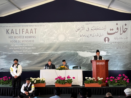 خدا تعالیٰ کے خاص فضل اور رحم اور حضور انور کی رہنمائی اور دعا سے جماعت احمدیہ ہالینڈ کو مورخہ ۲۸ تا ۳۰؍جون کو اپنا ۴۲واں جلسہ سالانہ بمقام فیئرھاؤتن نزد ننسپیت، منعقد کرنے کی توفیق مل رہی ہے۔الحمد للہ علیٰ ذالک۔ امسال جلسہ سالانہ کا مرکزی موضوع خلافت انسانی اقدار کی بہترین راہ نما ہے۔ جلسہ سالانہ ہالینڈ میں امسال مکرم عطا المجیب راشدصاحب امام مسجد فضل لندن نے بطور مہمان خصوصی شرکت کی۔ جلسہ کا پہلا دن مورخہ ۲۸؍جون کو صبح نو بجے کے قریب رجسٹریشن شروع ہوئی۔ پورے ملک سے احباب جماعت گاڑیوں اور ٹرینوں پر سفر کرکے اس بابرکت جلسہ میں شمولیت کے لیے پہنچے۔ اس میں بڑی تعداد ان لوگوں کی ہے جو کچھ عرصہ پہلے پاکستان سے آئے ہیں اور اسائیلم کیمپس میں رہ رہے ہیں۔ آج صبح مکرم ہبة النورVerhagen صاحب امیر جماعت ہالینڈ نے مشنری انچارج مکرم نعیم احمد وڑائچ صاحب اور افسر جلسہ سالانہ مکرم چوہدری مبشر احمد صاحب کے ساتھ انتظامات کا معائنہ کیا۔ جلسہ کا آغاز دوپہر ایک بجے کے قریب پرچم کشائی سے ہوا مکرم امیر صاحب جماعت احمدیہ ہالینڈ نے ہالینڈ کا جھنڈا اور مکرم عطا المجیب راشدصاحب مہمان خصوصی نے لوائے احمدیت لہرایا۔ بعد ازاں مکرم مہمان خصوصی صاحب نےخطبہ جمعہ دیا جس میں آپ نے جمعہ کی اہمیت بیان کی اور ذکر الٰہی اور درود شریف کثرت سے پڑھنے کی تلقین کی۔ اسی طرح آپ نے حضور انور کے خطبہ جمعہ کی اہمیت بیان کی اور اسے باقاعدگی سے سننے کی طرف توجہ دلائی۔ نماز جمعہ اور نماز عصر کے بعد احباب جماعت نے حضور انور ایدہ اللہ تعالیٰ بنصر ہ العزیز کا خطبہ جمعہ جلسہ گاہ میں سنا۔ جلسہ سالانہ کا پہلا اجلاس مکرم مہمان خصوصی صاحب کی زیر صدارت قرآن کریم کی تلاوت و ترجمہ اور نظم سے شروع ہوا اس کے بعد مکرم امیر صاحب نے افتتاحی خطاب کیا جس میں آپ نے رمضان کے آخری جمعہ میں حضور انور کی طرف سے کی گئی دعاؤں کی تحریک کی یاد دہانی کروائی۔ اس کے بعد مکرم مشنری انچارج صاحب نے اَلَا بِذِکۡرِ اللّٰہِ تَطۡمَئِنُّ الۡقُلُوۡبُ کے حوالے سے اپنی گذارشات پیش کیں۔ آپ نے نماز ، تلاوت قرآن کریم اور جمعہ کی اہمیت بیان کی۔ اس کے بعد اعلانات ہوئے آخر پر مکرم عطاالمجیب راشد صاحب نے دعا کروائی اس طرح جلسہ کا پہلا اجلاس اور پہلے دن کی کاررووائی اختتام پذیر ہوئی۔ اس کے بعد شام کا کھانا پیش کیا گیا اورپھرمغرب و عشاء کی نمازیں ادا کی گئیں۔