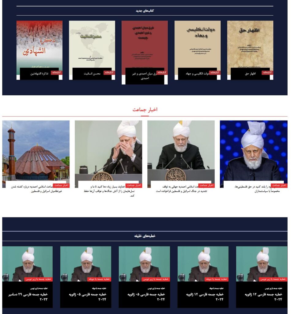 https://youtu.be/GRB8DcZD6Lw ٭…اس ویب سائٹ پر حضورِ انور ایدہ اللہ تعالیٰ کے خطبات جمعہ نیز پروگرام This Week with Huzoorفارسی سبٹائٹلز کے ساتھ دستیاب ہوں گے ٭…اس ویب سائٹ پر اب تک فارسی زبان میں سلسلہ عالیہ احمدیہ کی اٹھاون کتب اور مختلف موضوعات پر ایک صد نوّے کے قریب مضامین اپلوڈ ہو چکے ہیں اللہ تعالیٰ کے فضل سے مورخہ ۲؍جولائی ۲۰۲۴ء کو دوپہر ایک بج کر چالیس منٹ پر حضرت امیرالمومنین ایدہ اللہ تعالیٰ بنصرہ العزیز نے ایم ٹی اے سٹوڈیوز اسلام آباد میں تشریف لاکر از راہ شفقت جماعت احمدیہ کی مرکزی فارسی ویب سائٹ www.alislamfarsi.org کا افتتاح فرمایا۔ ویب سائٹ کا اجرا فرمانے کے بعد حضور انور ایدہ اللہ تعالیٰ بنصرہ العزیز نے دعا کروائی۔ اس ویب سائٹ میں مندرجہ ذیل عناوین کے تحت معلومات موجود ہیں: ۱۔اسلام، ۲۔قرآن شریف، ۳۔حدیث، ۴۔امام مہدی و مسیح موعود علیہ السلام، ۵۔خلافت احمدیہ، ۶۔کلام امام، ۷۔لائبریری، ۸۔مضامین، ۹۔اعتراضات کے جوابات، ۱۰۔گیلری، ۱۱۔اخبار، ۱۲۔شرائط بیعت، ۱۳۔ہم سے رابطہ ویب سائٹ پر فی الحال اٹھاون فارسی کتب اپلوڈ کی گئی ہیں جن میں سے حضرت اقدس مسیح موعود علیہ السلام کی چوالیس کتب، خلفائے کرام کی نو کتب اور علمائے سلسلہ کی پانچ کتب شامل ہیں۔ اسی طرح ویب سائٹ پر مختلف موضوعات کے تحت تقریباً ایک صد نوّے مضامین موجود ہیں۔ کوشش کی گئی ہے کہ جماعت احمدیہ کا نقطہ نظر حضرت مسیح موعود علیہ السلام اور خلفائے کرام کی تحریرات کی روشنی میں تقریباً ہر اہم موضوع کے متعلق پیش کیا جائے۔ اسی طرح جماعت احمدیہ کے عقائد کے حوالے سے روز مرہ جو اعتراضات پیش کیے جاتے ہیں جیسے جماعت احمدیہ انگریز کا خود کاشتہ پودا، جماعت احمدیہ ختم نبوت کی منکر ہے، جہاد کی حقیقت وغیرہ جیسے موضوعات پر سیر حاصل مضامین ویب سائٹ کا حصہ ہیں۔ ویب سائٹ پر حضرت امیرالمومنین ایدہ اللہ تعالیٰ بنصرہ العزیز کے ہر خطبہ جمعہ کا فارسی ترجمہ، فارسی ایرانی احمدی کی آواز میں اور فارسی سبٹائٹلز کے ساتھ دیا جاتا ہے۔ اسی طرح پروگرام This Week with Huzur بھی فارسی سبٹائٹلز کے ساتھ اپلوڈ کیا جاتا ہے۔ حضرت امیرالمومنین ایدہ اللہ تعالیٰ بنصرہ العزیز کے مختلف خطابات کے فارسی تراجم بھی اپلوڈ کیے گئے ہیں۔ مزید برآں ویب سائٹ پر عالمی جماعتی خبریں بھی دی جاتی ہیں۔ یاد رہے کہ حضرت امیرالمومنین ایدہ اللہ تعالیٰ بنصر ہ العزیز کی شفقت اور توجہ کے نتیجے میں جون ۲۰۲۳ء میں مرکزی فارسی ڈیسک کا قیام ہوا۔حضور انور ایدہ اللہ تعالیٰ نے ایک ملاقات کے دوران جو ایک ہدایت اس حقیر کو عطا کی وہ دیگر واقفین کے فائدے کے لیے بیان کی جاتی ہے۔حضورِ انور نے ارشاد فرمایا کہ یہاں فارغ نہیں بیٹھنا۔چوبیس گھنٹے کام کرنا ہے۔اللہ تعالیٰ اس عاجزاور سب واقفین کو حضرت امیرالمومنین ایدہ اللہ تعالیٰ بنصرہ العزیز کی توقعات کے مطابق کام کرنے کی توفیق عطا کرے۔آمین اس ویب سائٹ کی منظوری حضور انور ایدہ اللہ تعالیٰ نے اگست ۲۰۲۳ء میں عطا فرمائی تھی،جس کے بعدمرکزی آئی ٹی ڈیپارٹمنٹ کی مدد اور تعاون سے اس پر کام شروع کیا گیا۔ اس کی سیٹنگ اور فارمیٹنگ میں مکرم اسامہ احمد صاحب اور مکرم نعمان احمد ظفر صاحب نے کام کرنے کی توفیق پائی۔اور اس کے اندر جوکتب اپلوڈ کی گئی ہیں اور مضامین لکھے گئے ہیں،وہ بہت سارے دوستوں کے تعاون سے تیارہوئے ہیں۔اللہ تعالیٰ سب خدمت کرنے والوں کو جزائے خیر عطا کرے۔ امید ہے کہ اگر کوئی سعید فطرت احمدیت کے متعلق تحقیق کرناچاہے گا تو اس کو ضروری معلومات ویب سائٹ سے مل جائیں گی۔اسی طرح فارسی زبان بولنے اور سمجھنے والے احمدیوں کی تعلیم و تربیت کے حوالے سے بھی اس میں بہت لٹریچر موجود ہے۔ دعا ہے کہ اللہ تعالیٰ اس تکمیل اشاعت ہدایت کے زمانے میں بہترین رنگ میں حضرت مسیح موعود علیہ السلام اور خلفائے کرام کے پیغام کو سعید فطرت روحوں تک پہنچانے کی توفیق عطا فرمائے۔آمین (رپورٹ: کاشف علی۔ مربی سلسلہ و انچارج فارسی ڈیسک یوکے)
