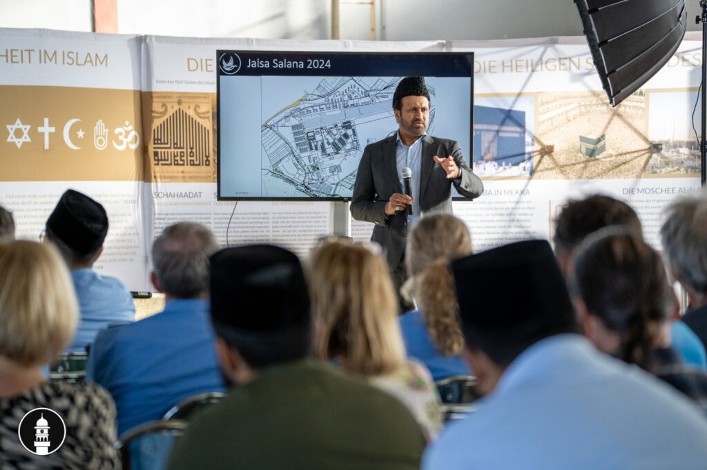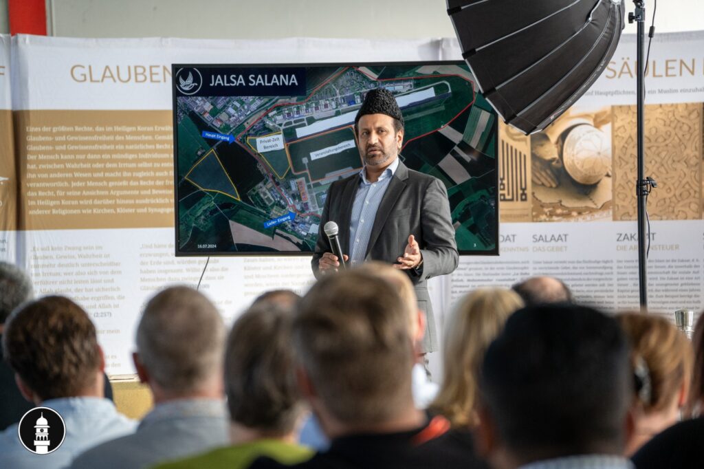 اللہ تعالیٰ کے فضل سے جماعت احمدیہ جرمنی کو اگست ۲۰۲۴ء میں اپنا ۴۸واں جلسہ سالانہ منعقد کرنے کی توفیق مل رہی ہے۔ الحمد للہ۔ گذشتہ سال حضور انور ایدہ اللہ تعالیٰ نے ارشاد فرمایا تھا کہ کوشش کریں کہ آئندہ جلسہ سالانہ ہال کی بجائے پنڈالوں میں کیا جائے حضور انور کے اس ارشاد کی تعمیل کے لیے فوری طور پر افسر جلسہ سالانہ کی نگرانی میں مناسب جگہ کی تلاش شروع کر دی گئی تھی اللہ تعالیٰ کے فضل اور حضور انور کی دعاؤں کے طفیل جرمنی کے شہر Mendigمیں موجود ایک پرانے ائیر پورٹ اور فی الوقت ائیر سکول کی جگہ کرائے پر دستیاب ہوگئی ہے۔ لیکن اس کے ساتھ ساتھ عالمی جنگی حالات نیز بعض شدت پسند مسلمانوں کی حرکات سے مقامی باشندوں نےشہری انتظامیہ سے اپنے تحفظات کا اظہار کیا۔ لوگوں کی بے چینی اور پریشانی کو رفع کرنے کے لیے مقامی مئیر نے جماعت جرمنی سے درخواست کی کہ آپ جلسہ سے قبل مقامی باشندوں کو اپنی جماعت اور جلسہ سالانہ کا تعارف کروائیں۔ اس تناظر میں مورخہ ۱۶؍جولائی ۲۰۲۴ء کو مقامِ جلسہ گاہ پر شام چھ بجے ایک معلوماتی پروگرام کا اہتمام کیا گیا۔ نیز مورخہ ۱۷؍جولائی کو سارا دن مقامی افراد کے لیے اسلام وقرآن نمائش بھی لگائی گئی۔ مکرم نیشنل امیر صاحب نے اس پروگرام کے جملہ انتظامات محترم حافظ فرید احمد خالدؔ صاحب نیشنل سیکرٹری تبلیغ وافسر جلسہ گاہ کے سپرد کیے تاکہ آنے والے مہمانوں کو جہاں جلسہ سالانہ کی انتظامیہ، انتظامی ڈھانچہ سمجھائے وہاں آنے والے معزز مہمانوں کو اسلام احمدیت کا صحیح رنگ میں تعارف بھی کرایا جاسکے۔ مکرم محمد لقمان مجوکہ صاحب اسسٹنٹ نیشنل سیکریٹری تبلیغ اس سیمینار کے ناظم اعلیٰ مقرر ہوئے۔ ناظم صاحب نے شہری انتظامیہ کی طرف سے تاریخ مقرر ہونے پر ۲۵ رکنی ٹیم تشکیل دی۔ مورخہ ۱۶؍جولائی صبح ساڑھے گیارہ بجے ائیرپورٹ کے وسیع وعریض ہینگر (جہاں چھوٹے جہاز پارک کیے جاتے ہیں) میں اسلام وقرآن نمائش تیارکرنے کے لیے وقار عمل شروع کیا گیا۔ اس موقع پر مقامی جماعت Neuwiedاور Koblenzکے احباب جماعت مدد کے لیے تشریف لائے۔ الحمدللہ پانچ گھنٹوں بعد اس ہال کو مہمانوں کے لیے جماعتی روایات کے عین مطابق تیار کردیا گیا تھا۔ مقررہ وقت سے پہلے ہی مہمانوں کی آمد شروع ہوگئی تھی۔ شام چھ بجے جماعت احمدیہ کے تعارف پر مبنی ایک فیچر فلم دکھائی گئی۔ پروگرام کا باقاعدہ آغاز تلاوت قرآن کریم سے ہوا۔ مکرم عطاء الوحید خان صاحب اسسٹنٹ نیشنل سیکریٹری تبلیغ، ناظم اسٹیج نے آنے والے معزز مہمانوں کو خوش آمدید کہا اور اس پروگرام کی مختصر غرض وغایت بیان کی۔ بعد ازاں مکرم امیر صاحب نےجلسہ سالانہ کی مختصر تاریخ اور جماعت احمدیہ میں اس کی اہمیت وضرورت کو بیان کیا۔ امیر صاحب نے بتایا کہ امسال ۲۳ تا ۲۵؍اگست کو ہم یہاں اپنا 48واں جلسہ سالانہ منعقد کریں گے۔ ۲۰۱۷ء میں اس جگہ پر ہمارے نوجوانوں (خدام الاحمدیہ ) نے اپنا تین روزہ اجتماع کیا تھا۔ امیر صاحب نے حاضرین کو حضرت امیر المومنین خلیفۃ المسیح الخامس ایدہ اللہ بنصرہ العزیز کا تعارف کرواتے ہوئے بتایا کہ انشاء اللہ ہمارے پیارے حضور اس جلسہ پر تشریف لائیں گے۔ مکرم محمد الیاس مجوکہ صاحب افسر جلسہ سالانہ نے حاضرین محفل کو جلسہ سالانہ کا مجموعی ڈھانچہ ڈیجیٹل نقشے کی مدد سے دکھایا نیز بتایا کہ اس جگہ کو جلسہ کے لیے مارکیز لگا کر تیار کرنے کے لیے تقریباً ایک ماہ کا وقت لگے گا اور ان سب کاموں کے لیے تقریباً آٹھ ہزارافراد حصہ لیتے ہیں ان میں سے اکثریت اپنے اپنے کاموں کی پیشہ وارانہ مہارت رکھتے ہیں نیز یہ سب احباب اپنے کاموں سے رخصت لیکر جلسہ پر طوعی خدمت کرنے آتے ہیں۔اسی طرح موصوف نے کھانا پکانے، پارکنگ، رہائش، خیمہ جات، سکیورٹی وغیرہ کے متعلق بتاتے ہوئے کہا کہ یہ علاقہ قدرتی خوبصورتی اور حسن رکھتا ہے لہذا اس کے حسن کی حفاظت کے لئے بھی علیحدہ ٹیمیں مقرر کی گئیں ہیں تاکہ یہاں پر موجود چرند پرند کو کسی قسم کا نقصان نہ ہو۔ اس کے بعدسوالات کا سلسلہ شروع ہوا۔ پینل میں مکرم امیر صاحب اور مکرم افسر صاحب جلسہ سالانہ کے ساتھ 