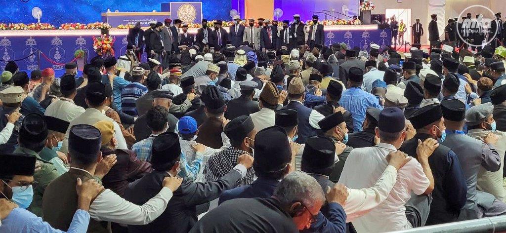 https://youtu.be/6uXCn-XPiA8 امسال ۱۱۷؍ممالک سے تقریباً ۴۸۲؍ قوموں سے دو لاکھ ۳۸؍ ہزار۵۶۱؍ افراد احمدیت میں داخل ہوئے حضرت خلیفۃ المسیح الخامس ایّدہ اللہ تعالیٰ بنصرہ العزیز نے احبابِ جماعت احمدیہ عالمگیر سے بیعت لی اور اجتماعی دعا کروائی (حديقة المہدي، ۲۸؍جولائی ۲۰۲۴ء ،نمائندگان الفضل انٹرنيشنل) آج جلسہ سالانہ برطانيہ کے ايک اہم انٹرنيشنل پروگرام ’عالمي بيعت‘ کا انعقاد ہوا۔اس مبارک تقريب کے ليے حضرت خليفة المسيح الخامس ايدہ اللہ تعاليٰ بنصرہ العزيز ايک بج کر تين منٹ پر مردانہ جلسہ گاہ ميں تشريف لائے اور سٹيج کے سامنے بيعت کے ليے تيار کي گئي کشادہ جگہ پر رونق افروز ہوئے۔ عالمگير بيعت کا بابرکت سلسلہ الٰہي نوشتوں کي روشني ميں حضرت خليفة المسيح الرابع رحمہ اللہ نے۱۹۹۳ء ميں شروع فرمايا تھا۔ اس خصوصي تقريب کے ليے حضور انور ايدہ اللہ تعاليٰ بنصرہ العزيز نے حضرت مسيح موعودعليہ الصلوٰة و السلام کا بادامي رنگ کا کوٹ زيب تن فرمایا ہوا تھا۔ بيعت لينے سے پہلے حضور انور ايدہ اللہ تعاليٰ بنصرہ العزيز نے فرمايا کہ اللہ تعاليٰ کے فضل سے اس سال بيعتوں کي مجموعي تعداد دو لاکھ ۳۸ ہزار ۵۶۱؍ہے۔۱۱۷؍ممالک سے ۴۸۴؍ سے زائد قوموں کے لوگ احمديت ميں داخل ہوئے۔الحمدللہ۔ اس کے بعد حضورِ انور بيعت کے الفاظ پڑھتے اور تمام حاضرينِ جلسہ يہاں پر اور دنيا بھر کے احمدي مواصلاتي رابطوں کے ذريعہ براہ راست اس بابرکت تقريب ميں شامل ہوتے ہوئے اپني اپني مساجد، سنٹرز اور گھروں ميں حضورِ انور کي اقتدا ميں يہ الفاظ دہراتے رہے۔ پہلے حضورِ انورنے عربي عبارت کے بعد انگريزي ميں عہدِ بيعت دہرايا جس کا گیارہ سے زائد زبانوں میں رواں ترجمہ بھی کیا جاتا رہا۔ جبکہ دوسرے مرحلہ پر حضورِ انور نے عربي عبارت کے بعد اردو ميں الفاظِ عہدِ بيعت دہرا کر حاضرين و ناظرين و سامعين سے بيعت لي۔ بيعت کے اختتام پر حضور انور نے اجتماعي دعا کروائي۔ عہدِ بيعت اَشْھَدُ اَنْ لَّا اِلٰہَ اِلَّا اللّٰہُ وَحْدَہٗ لَا شَرِيْکَ لَہٗ وَاَشْھَدُ اَنَّ مُحَمَّدًا عَبْدُہٗ وَرَسُوْلُہٗ آج ميں (مسرور) کے ہاتھ پر بيعت کر کے جماعت احمديہ مسلمہ ميں داخل ہوتا ہوں۔ميرا پختہ اور کامل ايمان ہے کہ حضرت محمد رسول اللہﷺ خاتم النبيين ہيں۔ميں حضرت مرزا غلام احمد قادياني عليہ الصلوٰة والسلام کو وہي امام مہدي اور مسيح موعود تسليم کرتا ہوں جس کي خوشخبري حضرت محمد رسول اللہﷺ نے عطا فرمائي تھي۔ ميں وعدہ کرتا ہوں کہ مسيح موعود عليہ الصلوٰة والسلام کي مقرر فرمودہ دس شرائط بيعت کا پابند رہنے کي کوشش کروں گا۔ دين کو دنيا پر مقدم رکھوں گا۔ خلافتِ احمديہ کے ساتھ ہميشہ وفا کا تعلق رکھوں گا۔ اور بحيثيت خليفة المسيح آپ کي تمام معروف ہدايات پر عمل کرنے کي کوشش کروں گا۔ اَسْتَغْفِرُ اللّٰہَ رَبِّيْ مِنْ کُلِّ ذَنْبٍ وَّ اَتُوْبُ اِلَيْہِ رَبِّ اِنِّيْ ظَلَمْتُ نَفْسِيْ وَاعْتَرَفْتُ بِذَنْبِيْ فَاغْفِرْلِيْ ذُنُوْبِيْ فَاِنَّہٗ لَا يَغْفِرُ الذُّنُوْبَ اِلَّا اَنْتَ (اے ميرے ربّ ميں نے اپني جان پر ظلم کيا اور ميں اپنے گناہوں کا اقرار کرتا ہوں۔ تو ميرے گناہ بخش کہ تيرے سوا کوئي بخشنے والا نہيں) عالمگير اخوّت کے اس بے نظير مظاہرہ يعني عالمي بيعت کي اس نہايت بابرکت تقريب ميں اس بات کي يقين دہاني کي گئي کہ عالمي بيعت کے دوران جلسہ گاہ اور اس کے گرد و نواح ميں موجود تمام افراد کا امام وقت امير المومنين حضرت خليفة المسيح الخامس ايّدہ اللہ تعاليٰ بنصرہ العزيز کے ساتھ انساني زنجير کے ذريعہ جسماني رابطہ بھي قائم ہو جائے۔ چنانچہ بيعت کے دوران گويا پنڈال ميں موجود اور پنڈال سے باہر تمام احمدي اپنے آقا و امام کي معيت ميں کئي ہزار جانيں اور ايک وجود کا بے مثال منظر پيش کر تے ہوئے نبي اکرم صلي اللہ عليہ وآلہٖ وسلم کي پيشگوئي کو پورا کرتے نظر آتے تھے کہ آنے والے زمانہ ميں تم لوگ ان مسلمانوں سے مل جانا جو ايک ’جماعت‘ ہوںگے ۔ عالمي بيعت کے بعد حضورِ انور نے اجتماعي دعا کروائي جس کے بعد يہ تقريب اپنے