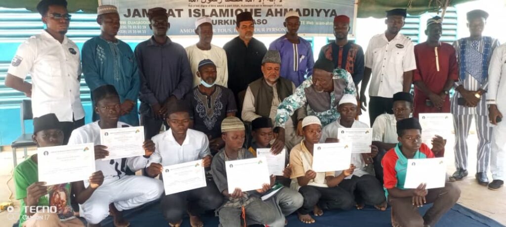 https://youtu.be/4y9Ce-W6_no شاکر مسلم صاحب ریجنل مبلغ ددگو تحریر کرتے ہیں کہ برکینافاسو کے ددگو ریجن کی مرکزی مسجد میں مورخہ ۱۳؍جولائی ۲۰۲۴ء کو تقریب آمین منعقد ہوئی۔ تقریب آمین کی صدارت مکرم محمود ناصر ثاقب صاحب امیر جماعت برکینافاسو نے کی۔ پروگرام کا آغاز بعد نماز ظہر مسجد میں تلاوت قرآن کریم سے ہوا۔ پھر ناظم علاقہ انصار اللہ نے استقبالیہ کلمات کہے۔ تقریب آمین میں ممبرات لجنہ اماءاللہ اور ناصرات بھی پردہ کی رعایت کے ساتھ شامل تھیں جہاں مکرم امیر صاحب کی اہلیہ محترمہ نے ممبرات لجنہ اماءاللہ و ناصرات سے قرآن کریم کے کچھ حصے سنے۔ بعد ازاں مکرم امیر صاحب نے خدام اور اطفال سے قرآن کریم کے کچھ حصے سنے اور پھر ان افراد میں یادگاری اسناد تقسیم کی گئیں۔ لجنہ اماء اللہ میں یہ اسناد مکرم امیر صاحب کی اہلیہ محترمہ نے تقسیم کیں جبکہ خدام اور اطفال کو مکرم امیر صاحب نے اسناد دیں۔ تقریب کے آخر پر مکرم امیر صاحب نے قرآن کریم کی تلاوت، اس سے محبت اور اسے سمجھ کر پڑھنے کی طرف توجہ دلاتے ہوئے احباب کو نصائح کیں۔ دعا کے ساتھ اس تقریب کا اختتام ہوا۔ آخر پر تمام احباب کی خدمت میں کھانا پیش کیا گیا۔ تقریب آمین میں درج ذیل جماعتوں کے ۲۷؍افراد نے شامل ہونا تھا تاہم سیکیورٹی حالات کی وجہ سے صرف ۱۹؍افراد تقریب میں شامل ہونے کے لیے آسکے۔ نمبر شمارنام جماعتتعداد۱جماعت کونا۹۲جماعت احمدیہ کاری۹۳جماعت احمدیہ سیراکلے۲۴جماعت احمدیہ چیریبا۱۵جماعت احمدیہ ما کونگو۱۶جماعت احمدیہ ددگو شہر۴۷جماعت احمدیہ سیرالو۱ اللہ تعالیٰ ان سب احباب کو نور قرآن عطا فرمائے اور انہیں قرآن کے علم سے منو رفرمائے۔ آمین (مرسلہ: چودھری نعیم احمد باجوہ۔ نمائندہ الفضل انٹرنیشنل)
