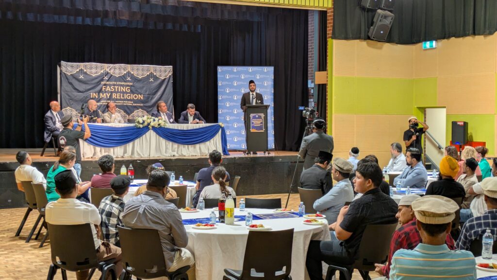 https://youtu.be/c7r6bIQpaUY میلٹن سٹی کونسل، آسٹریلیا میں بین المذاہب پروگرام اللہ تعالیٰ کے فضل سے ۹؍ مارچ ۲۰۲۵ء کو جماعت احمدیہ میلبرن ویسٹ کو میلٹن سٹی کونسل کے سب سے بڑے کمیونٹی ہال میں ایک بین المذاہب سمپوزیم بعنوان ’’میرے مذہب میں روزہ کا تصور‘‘ منعقد کرنے کی توفیق ملی۔الحمدللہ۔ ۹؍مارچ کی صبح کو احباب جماعت نے کمیونٹی ہال کوپروگرام کے لیے تیار کیا۔ کمیونٹی ہال کے برآمدے میں اسلام کے متعلق نمائش اور بک سٹال لگایا گیا۔پروگرام کا باقاعدہ آغاز شام ساڑھے چھ بجے تلاوت قرآن کریم سے ہوا۔ اس کے بعد بِشپ Smith Tafili نے عیسائیت میں روزوں کا تصور اور ربائی Ralph Genendi نے یہودیت میں روزوں کا تصور سے متعلق اپنی اپنی تقاریر پیش کیں۔بعد ازاں درج ذیل احباب نے رمضان المبارک کے حوالے سے اپنے تاثرات کا اظہار کیا: محترم Evan Mulholland سٹیٹ ممبر پارلیمنٹ، محترم Steve Abboushi میئر میلٹن سٹی کونسل، محترم ڈیوڈ کوان صاحب پریزیڈنٹ میلٹن انٹر فیتھ نیٹ ورک،محترمہ Simmone Cottom ممبر لبرل پارٹی اورکونسلر محترمہ Julie Shanon۔پروگرام کے آخر میں خاکسار (مربی سلسلہ) کو اسلام میں روزوں کی غرض و غایت اور افادیت پرایک پریزنٹیشن دینے کی توفیق ملی۔الحمدللہشام پونے آٹھ بجے کے قریب مغرب کی اذان کے ساتھ ہال میں موجود تمام لوگوں نے روزہ افطار کیا۔ افطارکے لیے مہمانوں کی خدمت میں مکس فروٹ اور پانی پیش کیاگیا۔افطارکے بعد احباب جماعت نے نماز مغرب اداکی۔ تمام مہمانوں کو نماز کو مشاہدہ کرنے اور اس میں شامل ہونے کی دعوت دی گئی۔ نماز مغرب کی ادائیگی کے بعد مہمانوں کو رات کا کھانا پیش کیا گیا اور اسلام کے متعلق مختلف موضوعات پر غیر رسمی طورپر گفتگو کا سلسلہ جاری رہا۔ محض اللہ کے فضل سے پروگرام نہایت کامیاب رہا اور ۳۸ سے زائدتبلیغی مہمان اور معزز شخصیات اس میں شامل ہوئیں۔ الحمدللہاس علاقے کی ایک مشہور اخبار Star Weekly News نے اس پروگرام کے حوالے سے ایک تفصیلی رپورٹ شائع کی۔ ایک محتاط اندازے کے مطابق میڈیا اور سوشل میڈیا کےذریعے ہمارا پیغام تقریباً ۳۷ ہزار لوگوں تک پہنچا۔ الحمدللہ۔ مسجدبیت السلام، میلبرن میں بین المذاہب پروگرام محض اللہ تعالیٰ کے فضل سےمورخہ ۱۵؍مارچ ۲۰۲۵ء کو میلبرن کی چار جماعتوں میلبرن ایسٹ، لینگوارن، کلائیڈ اور بَیرک کوریجنل سطح پر ایک بین المذاہب پروگرام بعنوان ’’میرے مذہب میں روزہ کا تصور‘‘ مسجد بیت السلام میں منعقد کرنے کی توفیق ملی۔الحمدللہ پروگرام کا باقاعدہ آغاز شام سوا چھ بجے تلاوت قرآن کریم سے ہوا جس کے بعد جماعت احمدیہ آسٹریلیا کے تعارف اور خدمت خلق کی کارروائیوں سے متعلق ایک پریزنٹیشن پیش کی گئی۔ اس کے بعد درج ذیل مذاہب کے راہنماؤں نے اپنے اپنے مذاہب میں روزوں کے تصور کو بیان کیا :ہندو مت: Sri Rama Dasیہودیت: Yaakov Glasmanعیسائیت: John Milkuvichاسلام: خاکسار (مربی سلسلہ)بعد ازاں درج ذیل مہمانان نے رمضان المبارک اور جماعت احمدیہ سے متعلق اپنے تاثرات کا اظہار کیا: محترم کرس بولم صاحب (Chris Bolam) میئر فرینکسٹن سٹی کونسل، محترمہ لانا فارموسو (Lana Formoso) کونسلر Dandenongسٹی کونسل اور محترم بریڈ بیٹن صاحب (Brad Battin) سٹیٹ ممبر پارلیمنٹ۔پروگرام کی اختتامی تقریر مولانا انعام الحق کوثر صاحب امیرو مشنری انچارج آسٹریلیا نے پیش کی، جس میں امیر صاحب نے بین المذاہب ہم آہنگی اور امن کو فروغ دینے کی طرف توجہ دلائی۔ شام پونے آٹھ بجے کے قریب ایک خادم نے اذان دی اورہال میں موجود تمام لوگوں نے روزہ افطار کیا اور بعد ازاں مہمانوں کی خدمت میں رات کا کھانا پیش کیا گیا۔اللہ تعالیٰ کے فضل سے پروگرام نہایت کامیاب رہا اور ۸۲ سے زائدتبلیغی مہمان اور معزز شخصیات اس میں شامل ہوئے۔الحمدللہ (رپورٹ: عاطف احمد زاہد۔ نمائندہ الفضل انٹرنیشنل) مزید پڑھیں: آسٹریلیا کے ریجن وکٹوریہ میں جلسہ ہا ئے یوم مسیح موعود کا بابرکت انعقاد
