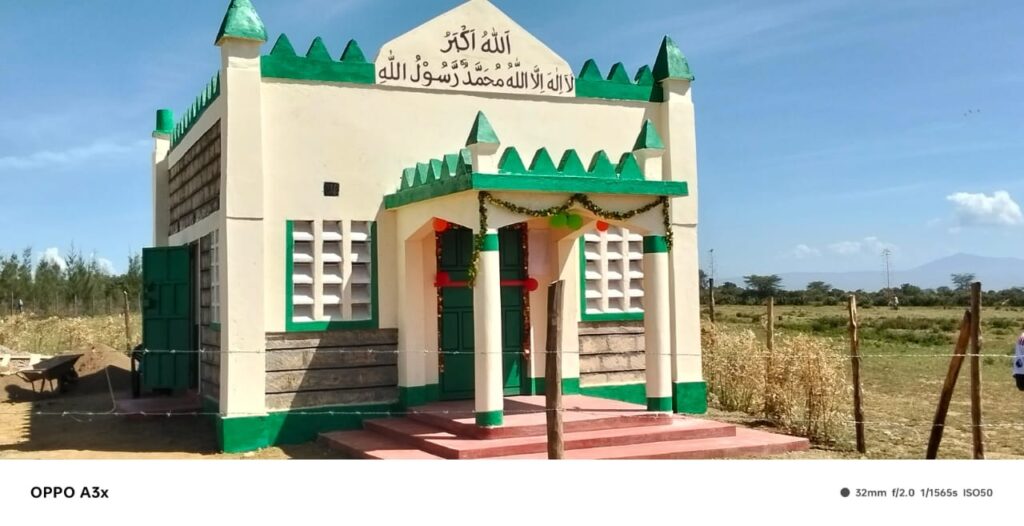 اس کے بعد جماعت نے یہاں ایک نہایت موزوں جگہ پر پلاٹ خریدا جس پر ۳۱؍اگست ۲۰۲۵ء بروزاتوارمکرم ناصر محمود طاہر صاحب امیر و مبلغ انچارج کینیا نے نکورو ریجن کے احباب جماعت و معلمین اور اراکین مرکزی مجلس عاملہ کی معیت میں اس علاقہ میں پہلی احمدیہ مسجد کا سنگ بنیاد رکھا۔ اس مبارک تقریب میں سرکاری افسران اور مقامی افراد بھی بڑی تعداد میں شامل ہوئے ۔ مسجد کی تعمیر کا کام مکرم عماری سکوا صاحب معلم سلسلہ کی نگرانی میں ہوا اور اللہ تعالیٰ کے فضل سے یہاں ۱۸؍فٹ چوڑی اور ۲۷؍فٹ لمبی خوبصورت پختہ مسجد ماہ نومبر میں مکمل ہوئی جس میں اندازاً ۷۰؍سے ۸۰؍احباب نماز ادا کر سکتے ہیں۔ اللہ تعالیٰ کے فضل سے مسجد ہٰذا میں تمام بنیادی سہولتیں میسر ہیں۔ ان شاء اللہ جلد ہی ایم ٹی اے کی سہولت بھی فراہم کردی جائے گی۔