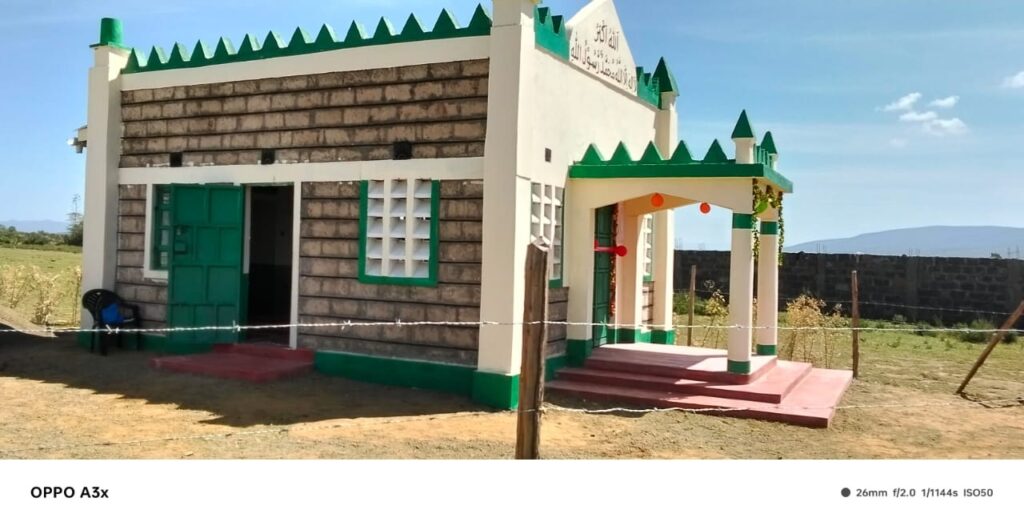 اس کے بعد جماعت نے یہاں ایک نہایت موزوں جگہ پر پلاٹ خریدا جس پر ۳۱؍اگست ۲۰۲۵ء بروزاتوارمکرم ناصر محمود طاہر صاحب امیر و مبلغ انچارج کینیا نے نکورو ریجن کے احباب جماعت و معلمین اور اراکین مرکزی مجلس عاملہ کی معیت میں اس علاقہ میں پہلی احمدیہ مسجد کا سنگ بنیاد رکھا۔ اس مبارک تقریب میں سرکاری افسران اور مقامی افراد بھی بڑی تعداد میں شامل ہوئے ۔ مسجد کی تعمیر کا کام مکرم عماری سکوا صاحب معلم سلسلہ کی نگرانی میں ہوا اور اللہ تعالیٰ کے فضل سے یہاں ۱۸؍فٹ چوڑی اور ۲۷؍فٹ لمبی خوبصورت پختہ مسجد ماہ نومبر میں مکمل ہوئی جس میں اندازاً ۷۰؍سے ۸۰؍احباب نماز ادا کر سکتے ہیں۔ اللہ تعالیٰ کے فضل سے مسجد ہٰذا میں تمام بنیادی سہولتیں میسر ہیں۔ ان شاء اللہ جلد ہی ایم ٹی اے کی سہولت بھی فراہم کردی جائے گی۔